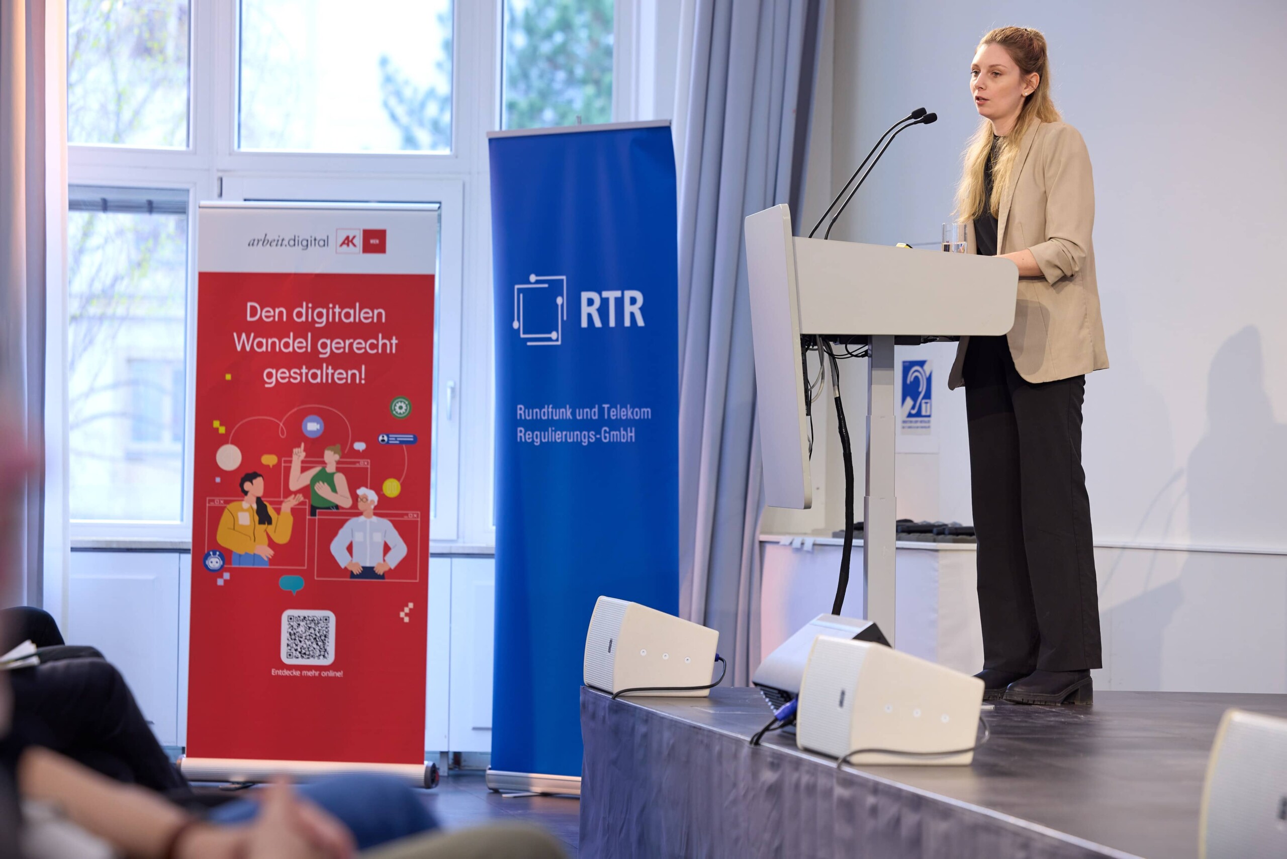 Am 7. April 2025 fand im AK Wien Bildungsgebäude die Fachveranstaltung „KI in Personalmanagement und Beschäftigung“ statt. Organisiert wurde sie von der KI-Servicestelle der Rundfunk und Telekom Regulierungs-GmbH (RTR) gemeinsam mit der Arbeiterkammer Wien und bot ein vielfältiges Programm rund um die aktuellen Entwicklungen im Bereich des KI-Einsatzes im Arbeitskontext.
