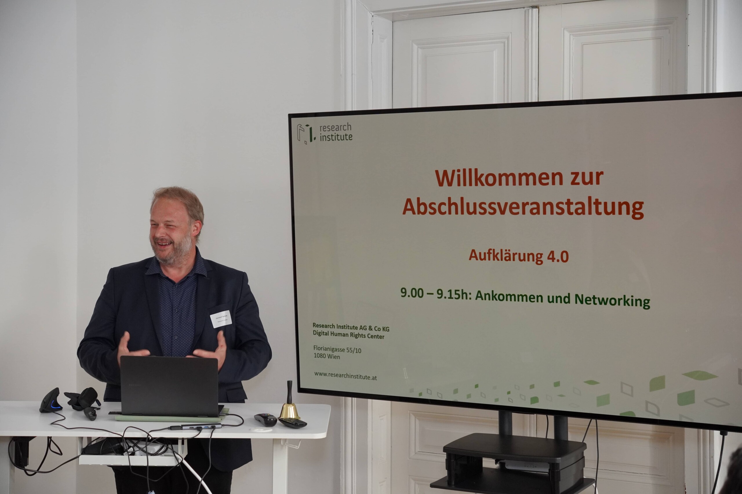 Zum Auftakt jeder Veranstaltung begrüßten der wissenschaftliche Leiter des Research Institute, Ing. Dr. Christof Tschohl, sowie Vertreter:innen der Auftraggeberseite die Teilnehmenden und führten mit einem kurzen Impulsvortrag in die Thematik ein.